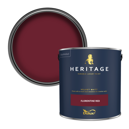 _x000D_\nDulux Heritage Velvet Matt - Florentine Red is a wonderfully rich, highly pigmented shade that has retained popularity through the decades. Sumptuous and dramatic, this full bodied red is the perfect shade for an office or dining room where impact and hospitality are the intended effect._x000D_\n_x000D_\nFor decorators looking for a luxurious, high-quality finish, Velvet Matt Florentine Red is the perfect choice. This premium interior emulsion offers an ultra-smooth, matt finish with a rich depth of colour, designed to enhance both contemporary and traditional interiors._x000D_\n_x000D_\nWith exceptional durability and superior coverage, this paint provides a stunning, soft-touch feel. Ideal for high-end decorating projects, Florentine Red ensures a flawless and elegant look._x000D_\nHow to Use