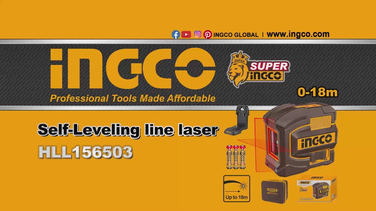 The Ingco HLL156503 self-leveling line laser is a red laser level designed for accurate horizontal and vertical line projection on interior jobs up to 18m.